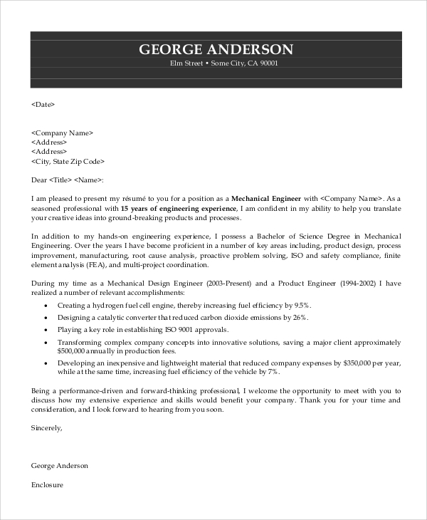 The cover letter example below is that of a new graduate in mechanical engineering. Times new roman, ariel, etc.), and avoid using bolded or underlined text. Cover letter example for a graduate engineer job. When you are a recent graduate applying for an internship or early in your career, your cover letter should contain appropriate scenarios that demonstrate your ability to perform the responsibilities listed in the job description. I graduated with a masters in chemical engineering from carnegie mellon university.